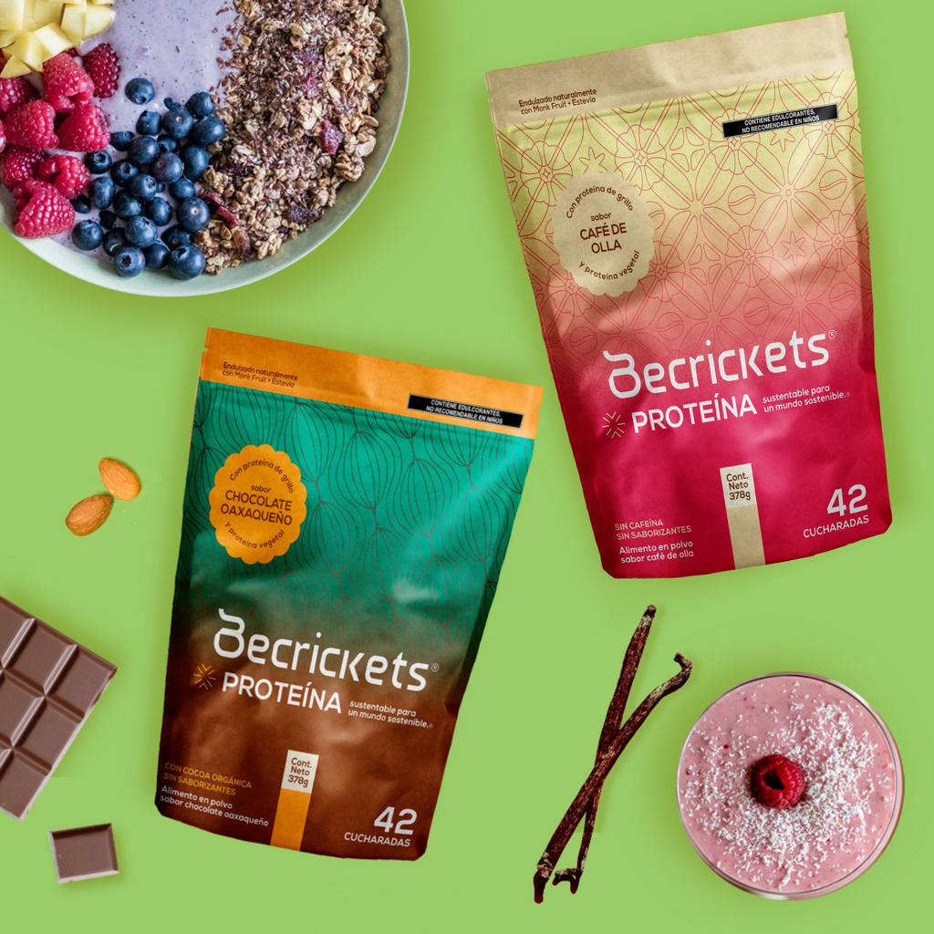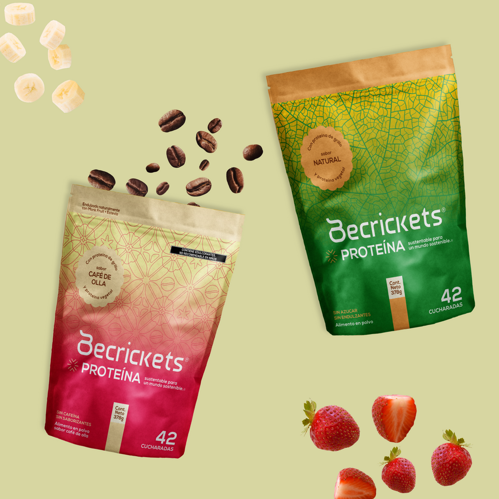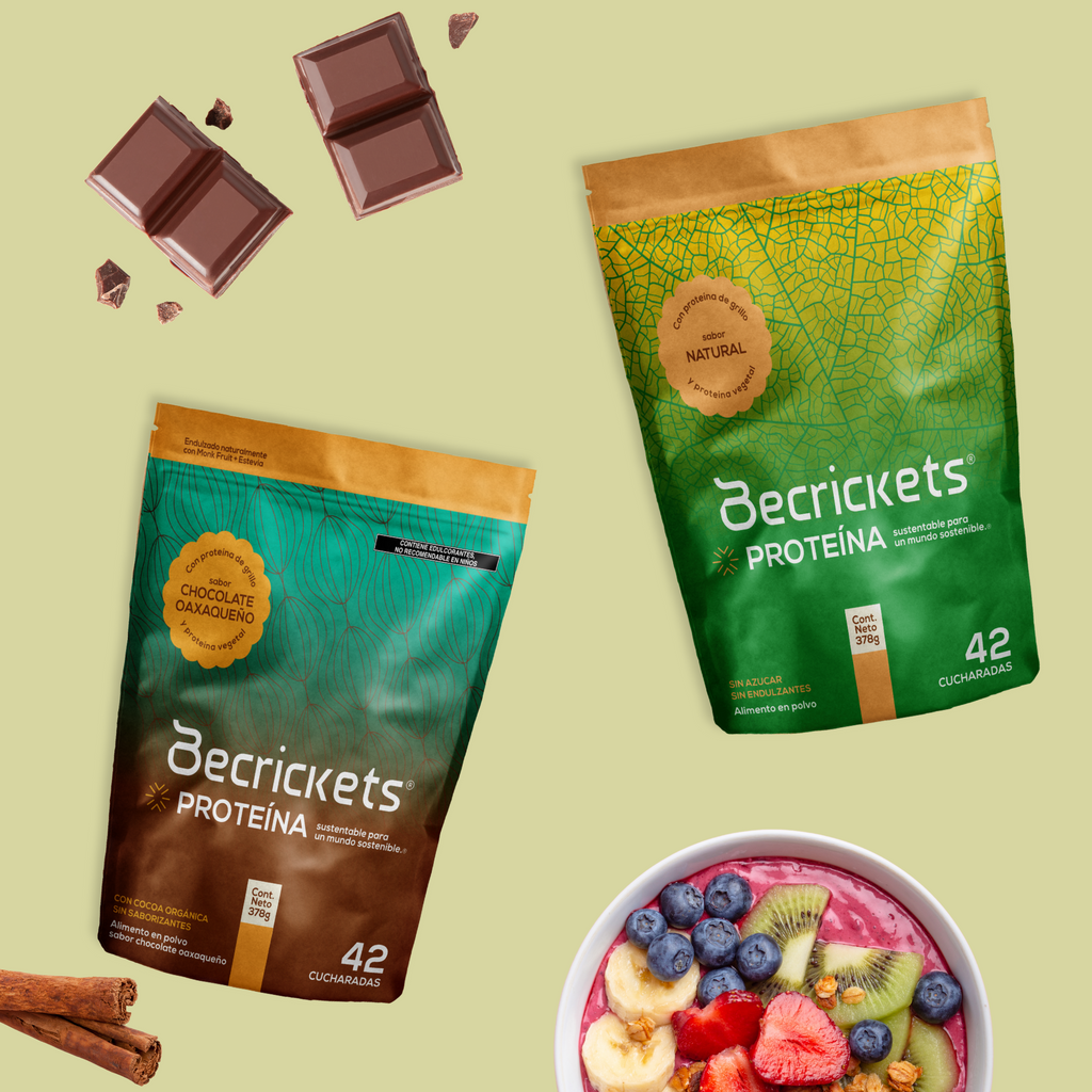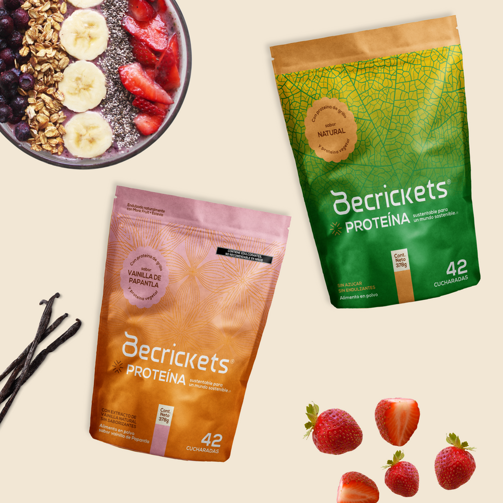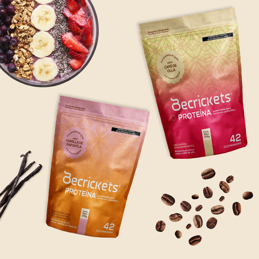 - Producto Hecho en México, con proteína de grillo, proteína vegana (vegetal) y extracto de vainilla natural en polvo.